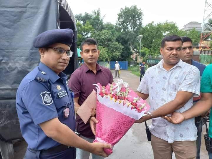 এ সময় অফিসার ইনচার্জ মহোদয়কে ফুল দিয়ে শুভেচ্ছা জানান অত্র থানার পুলিশ পরিদর্শক (তদন্ত) জনাব বিশ্বজিৎ কুমার, পুলিশ পরিদর্শক (অপারেশন) জনাব তারেক ফয়সাল ইবনে আজিজ এবং থানার অন্যান্য অফিসার বৃন্দ।।