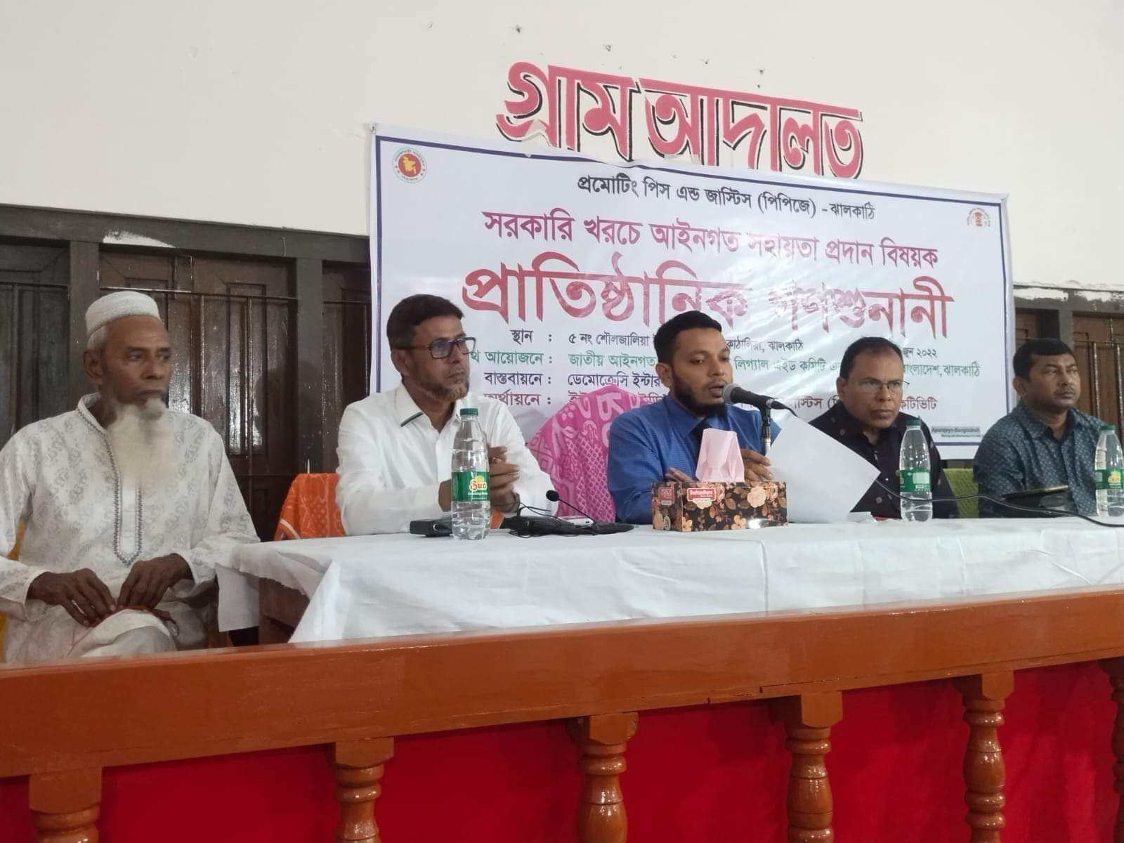 ইউপি চেয়ারম্যান মোঃ মাহমুদ হোসেন রিপনের সভাপতিত্বে প্রধান অতিথি হিসেবে সরকারি খরচে (বিনামূল্যে) আইনগত সহায়তা বিষয়ে গুরুত্বপূর্ন বক্তব্য রাখেন, সিনিয়ার সহকারি জাজ ঝালকাঠির মোঃ আমিনুল ইসলাম।