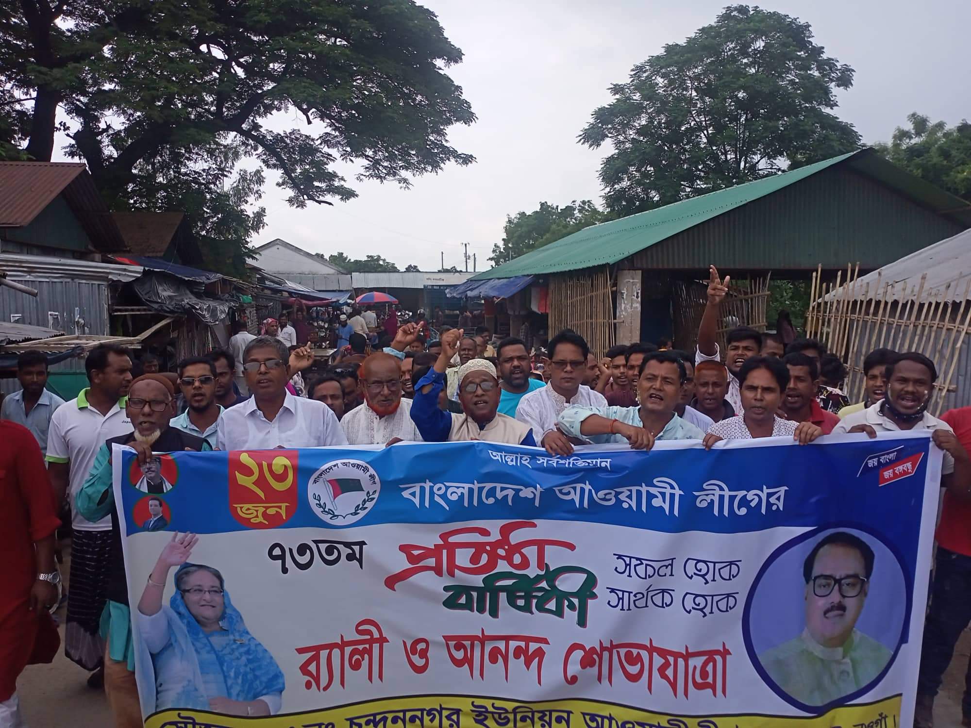 সারা দেশ ব্যাপী নানা আয়োজনের মধ্য দিয়ে বাংলাদেশের প্রধান বৃহত্তম দল বাংলাদেশ আওয়ামী লীগের ৭৩তম প্রতিষ্ঠা বার্ষিকী উপলক্ষে দলটির সকল অঙ্গ সংগঠনের নেতৃবৃন্দ দিনটি বিশেষ ভাবে উদযাপন করেছে। আওয়ামী লীগের প্রতিষ্ঠা বার্ষিকী উপলক্ষে নওগাঁ নিয়ামতপুরের ২নং চন্দননগর ইউনিয়ন আওয়ামী লীগের উদ্যোগে ছাতড়া দলীয় কার্যালয়ে বৃহস্পতিবার বেলা ১১.৩০টার সময় জাতীয় সংগীত পরিবেশনের মধ্যে দিয়ে জাতীয় পতাকা ও দলীয় পতাকা উত্তোলনের মধ্য দিয়ে দলটির ৭৩ তম প্রতিষ্ঠা বার্ষিকী উৎযাপন করে।