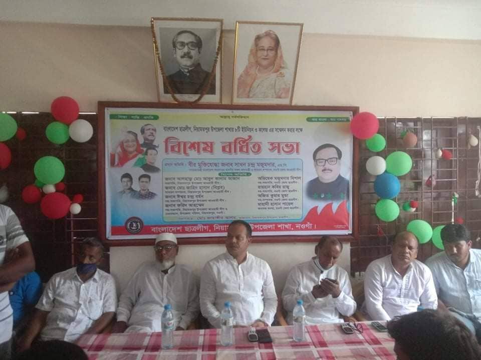 নওগাঁর নিয়ামতপুরে ছাত্রলীগের ইউনিয়ন ও কলেজ ছাত্রলীগের কমিটি গঠনের লক্ষ্যে বিশেষ বর্ধিত সভা অনুষ্ঠিত হয়েছে। রবিবার (২৬ জুন) সকাল সাড়ে ১১ টার সময় উপজেলা আওয়ামী লীগ কার্যালয়ে এ সভা অনুষ্ঠিত হয়। উপজেলা ছাত্রলীগের আহ্বায়ক জাহাঙ্গীর আলমের সভাপতিত্বে বিশেষ বর্ধিত সভায় উপস্থিত ছিলেন উপস্হিত ছিলেন উপজেলা আওয়ামী লীগের সাধারণ সম্পাদক জাহিদ হাসান বিপ্লব, সহসভাপতি ও উপজেলা পরিষদ চেয়ারম্যান ফরিদ আহম্মেদ, সরকার কামাল উদ্দিন, জেলা ছাত্রলীগের সহসভাপতি অভিষেক মজুমদার বিশাল, রায়হান কবির রাজু, অজিত কুমার মুন্ডা, সদস্য মাহাদী হাসান পায়েল সহ উপজেলা ছাত্রলীগের আহ্বায়ক কমিটি ও কলেজ কমিটির সদস্যবৃন্দ। আলোচনা সভায় ইউনিয়ন ও কলেজ ছাত্রলীগের কমিটি নিয়ে সিদ্ধান্ত গৃহীত হয়।