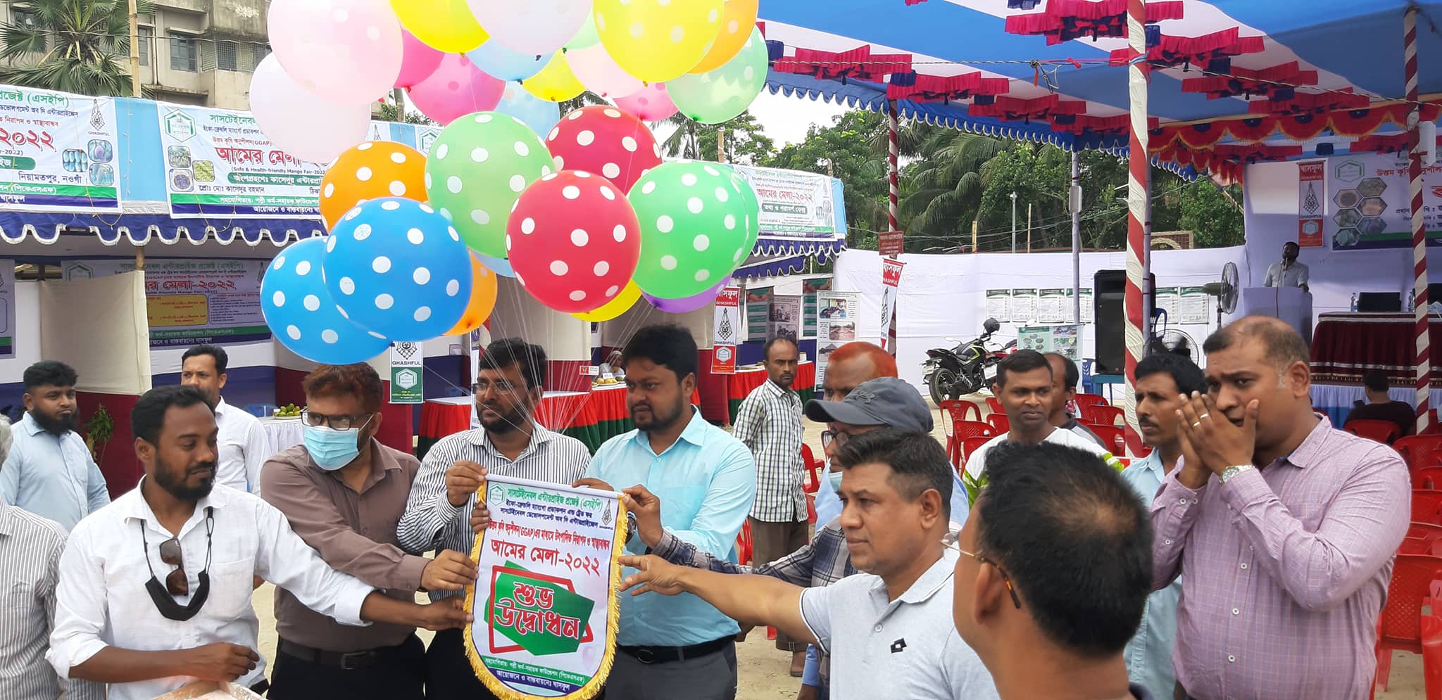 আমের নতুন রাজধানী নামে খ্যাত নওগাঁয় বাহারি সব আমের উৎপাদন হয়ে থাকে। তা নিয়েই আয়োজন করা হয়েছে মেলার। আয়োজন করেছে বেসরকারি উন্নয়ন সংস্থা ঘাসফুল, মেলায় নানা রং ও বর্ণের নজরকাড়া শতাধিক প্রজাতির সুস্বাদু আমের প্রদর্শনী করা হয়। সঙ্গে ছিল আলোচনা সভাও নওগাঁ শহরের নওজোয়ান মাঠে বুধবার বিকেল ৪টার দিকে দুই দিনব্যাপী এই মেলার উদ্বোধন করেন নওগাঁ কৃষি সম্প্রসারণ অধিদপ্তরের (ভারপ্রাপ্ত) উপপরিচালক এ, কে, এম, মনজুরে মাওলা। উদ্বোধনী অনুষ্ঠানে প্রধান অতিথি হিসেবে উপস্থিত ছিলেন অতিরিক্ত জেলা প্রশাসক শিহাব রায়হান, বেসরকারি উন্নয়ন সংস্থা রাণীর নির্বাহী পরিচাল ফজলুল হক, আম রপ্তানিকারক শামিম হোসেন, কৃষি উদ্যোক্তা ইমরান হেসেন প্রমুখ। ঘাসফুলের সাস্টেইনেবল এন্টারপ্রাইজ প্রজেক্ট (এসইপি) প্রকল্পের অধীনে জেলার নিয়ামতপুর ও সাপাহারে উপকারভোগী ১৮ জন কৃষি উদ্যোক্তা তাঁদের বাগানে উৎপাদিত বাহারি ও সুস্বাদু আম মেলায় প্রদর্শন করেন। দেশি প্রজাতির আমের মধ্যে আম্রপালি, ল্যাংড়া, বারি-৪, কাটিমন, ফজলী, হাড়িভাঙা, শ্রাবণী, বারি-১৩, গৌড়মতি, আশ্বিনা, তরফদার ভোগ, মল্লিকা, সুরমা ফজলী, নাক ফজলী, হিমসাগর, কুমরাজালি, এসইপি-২, ইন্ডিয়ান চোষা এবং বিদেশি জাতের আমের মধ্যে মিয়াজাকি, আমেরিকান পালমার, ব্যানানা সহ প্রায় ১০০ প্রজাতির আম দেখা যায়। এর মধ্যে প্রায় দুই কেজি ওজনের দেশি প্রজাতির তরফদার ভোগ আমও দেখা যায়। ঘাসফুলের এসইপি প্রকল্পের পরিবেশ কর্মকর্তা মুসাব্বির আহমেদ বলেন, ঘাসফুল সংস্থা পল্লী কর্ম সহায়ক ফাউন্ডেশনের (পিকেএসএফ) আর্থিক সহযোগিতায় নওগাঁর নিয়ামতপুর ও সাপাহারে আট শতাধিক কৃষককে নিরাপদ আম উৎপাদনে প্রশিক্ষণ দিয়ে থাকেন। এছাড়া এসব কৃষকের উৎপাদিত আম দেশে ও বিদেশে বাজারজাতকরণে সহযোগিতা করে আসছেন। উদ্বোধনী অনুষ্ঠানে বক্তারা বলেন, আমের সাথে নওগাঁবাসীর নাড়ির সম্পর্ক। বর্তমানে নওগাঁর অর্থনীতি ও সংস্কৃতিতে আমের ভূমিকা ব্যাপক। নওগাঁয় উৎপাদিত আমের ৯৫ শতাংশ আমই রপ্তানি উপযোগী। আম রপ্তানির বাধা কাটাতে পারলে শুধু নওগাঁ নয় আম হতে পারে দেশের অন্যতম প্রধান রপ্তানিকারি কৃষিপন্য। আরো বলেন, নওগাঁকে এগিয়ে নিতে সবাই এগিয়ে আসুন সহযোগিতা করুন তাহলে নওগাঁর আম বিশ্বের দরবারে মাথা উঁচু করে দাঁড়িয়ে থাকতে নওগাঁ হবে আমের মডেল।