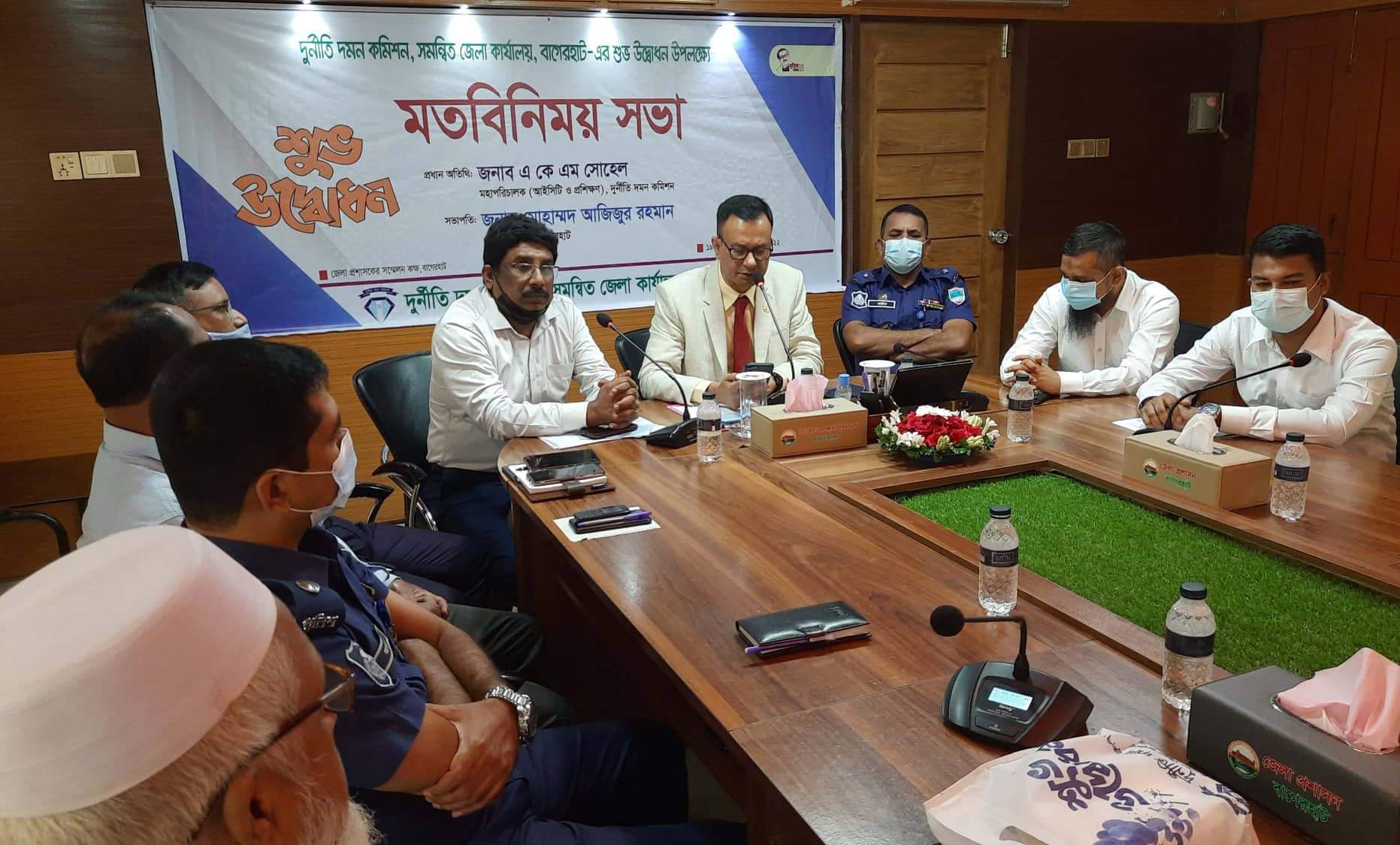 রবিবার (০৩ জুলাই) বেলা ১১টায় বাগেরহাট জেলা প্রশাসকের সম্মেলন কক্ষে অনুষ্ঠিত মতবিনিময় সভায় বক্তব্য দেন, দুদকের খুলনা বিভাগীয় পরিচালক মঞ্জুর মোরশেদ, বাগেরহাটের পুলিশ সুপার কেএম আরিফুল ইসলাম, বাগেরহাটের অতিরিক্ত জেলা ম্যাজিষ্ট্রেট হাফিজ আল আসাদ, সাতক্ষিরার অতিরিক্ত জেলা ম্যাজিষ্ট্রেট রেজা রশীদ, অতিরিক্ত পুলিশ সুপার মীর আছাদুজ্জামান, দুদক সমন্বিত জেলা কার্যালয়, বাগেরহাটের উপ-পরিচালক মোঃ শাহরিয়ার প্রমুখ। বাগেরহাটের জেলা প্রশাসক মোহাম্মদ আজিজুর রহমানের সভাপতিত্বে সভায় বাগেরহাট ও সাতক্ষিরা জেলার সরকারি বিভিন্ন দপ্তরের কর্মকর্তা-কর্মচারী ও স্থানীয় সুশীল সমাজের নেতৃবৃন্দ উদ্বোধনে অংশগ্রহণ করেন।