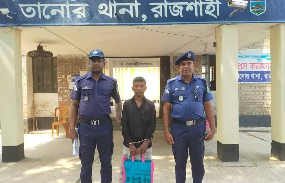 ১৯৯৫ সালে হওয়া স্ত্রী হত্যা মামলার যাবৎ জীবন সাজা প্রাপ্ত আসামী নজরুল ইসলাম ২৭ বছর পর আটক হলো তানোর থানার এক দল চৌকস পুলিশ টিমের হাতে। রাজশাহী জেলার পুলিশ সুপার, এ বি এম মাসুদ হোসেন, বিপিএম বারের দিক নির্দেশনায় ও অতিরিক্ত পুলিশ সুপার, সনাতন চক্রবর্তী ক্রাইম & অপসের সার্বিক তত্বাবধানে এবং সিনিয়র সহকারী পুলিশ সুপার, গোদাগাড়ী সার্কেল,আসাদুজ্জামান ও তানোর থানার অফিসার ইনচার্জ, কামরুজ্জামান মিয়ার নেতৃত্বে ৩০ এপ্রিল চাঁপাইনবাবগঞ্জ জেলার সুন্দরপুর ইউনিয়নের প্রত্যন্ত অঞ্চল হইতে ভোর রাত্রি অনুমান ৩.০০ঘটিকার সময় যাবৎজীবন সাজাপ্রাপ্ত আসামী মোঃ নজরুল ইসলাম, পিতা-মৃত ভন্ডু মন্ডল, সাং-ছাঐড়, থানা-তানোরকে গ্রেফতার করা হয়। উল্লেখ্য যে, স্ত্রী হত্যার দায়ে উক্ত আসামীর বিরুদ্ধে তানোর থানার মামলা নং-১৬,তারিখ ২৭/০৫/১৯৯৫ ইং ধারা-৩০২ রুজু হয়। মামলাটি তদন্ত করিয়া তদন্তকারী কর্মকর্তা তদন্ত শেষে বিজ্ঞ আদালতে অভিযোগপত্র দাখিল করেন। উক্ত অভিযোগপত্রের ভিত্তিতে বিজ্ঞ দায়রা জজ আদালত, রাজশাহী সাক্ষ্য-প্রমান শেষে উক্ত আসামী মোঃ নজরুল ইসলাম এর বিরুদ্ধে দন্ড বিধি ৩০২ ধারার অভিযোগ প্রমানিত হওয়ায় উক্ত ধারার অধিনে বর্ণিত আসামীকে যাবৎ জীবন কারাদন্ড সহ ৫,০০০/-টাকা জরিমানা অনাদায়ে আরো ৩ মাসের সশ্রম কারাদন্ড প্রদান করেন। উক্ত আসামী মামলা হওয়ার পর এলাকা হইতে নিরুদ্দেশ হইয়া যায়। দীর্ঘ ২৭ বছর নিরুদ্দেশ থাকার পরে মাননীয় পুলিশ সুপার রাজশাহী মহোদয়ের সার্বিক দিক নির্দেশনায় তানোর থানার চৌকস পুলিশ টিম কাজ শুরু করে এবং অবশেষে আসামীর অবস্থান সনাক্ত করে অদ্য ইং ৩০ এপ্রিল চাঁপাইনবাবগঞ্জ জেলার সুন্দরপুর ইউনিয়নের প্রত্যন্ত অঞ্চল হইতে বর্ণিত আসামীকে গ্রেফতার করতে সক্ষম হয়। উক্ত আসামী এতদিন ছদ্দবেশী নাম ছিলো আঃ আজিজ, পিতা-মশির মন্ডল, সাং- সুন্দরপুর, থানা-চাঁপাইনবাবগঞ্জ সদর, জেলা-চাঁপাইনবাবগঞ্জ ইত্যাদি ঠিকানা ব্যবহার করিয়া জাতীয় পরিচয়পত্রের স্মার্টকার্ড তৈরি করে ২য় বিবাহ করিয়া সেখানে বসবাস করতো। আসামী ঢাকায় লেবারের কাজ করে। মাঝে মধ্যেই বাড়ী আসে। গ্রেফতারকৃত আসামীকে ইং ৩০ তারিখ বিজ্ঞ আদালতে সোপর্দ্দ করা হয়েছে।
