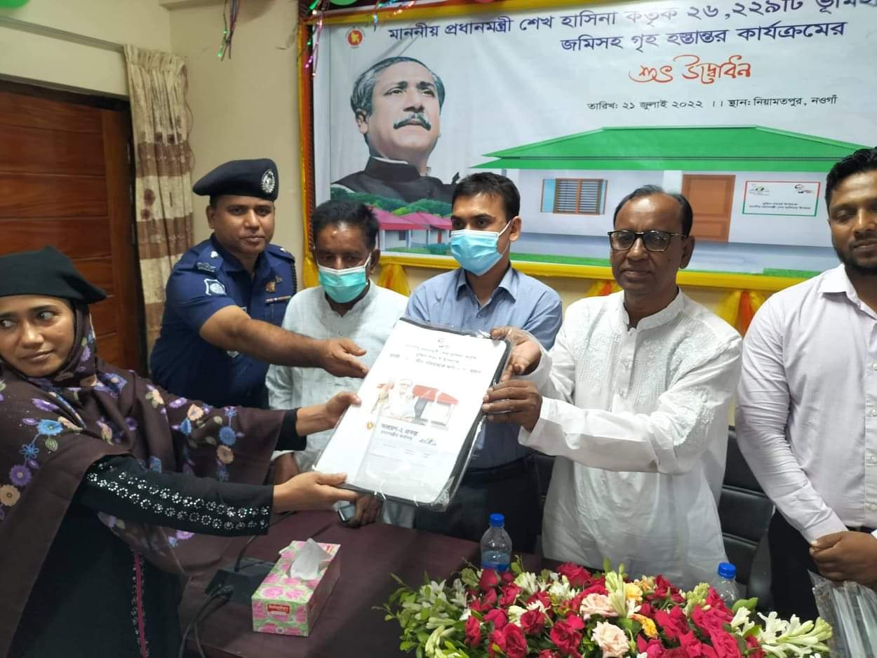 নওগাঁর নিয়ামতপুরে ৪র্থ পর্যায়ে প্রধানমন্ত্রীর দেওয়া উপহার ঘর পেলেন আরও ৫টি ভূমিহীন ও গৃহহীন পরিবার। বৃহস্পতিবার ভিডিও কনফারেন্সে প্রধামন্ত্রীর উদ্বোধনের পর ৫টি ঘর হস্তান্তর করেন উপজেলা পরিষদ চেয়ারম্যান ফরিদ আহম্মেদ ও উপজেলা নির্বাহী কর্মকর্তা (ইউএনও) আব্দুল্লাহ আল মামুন।