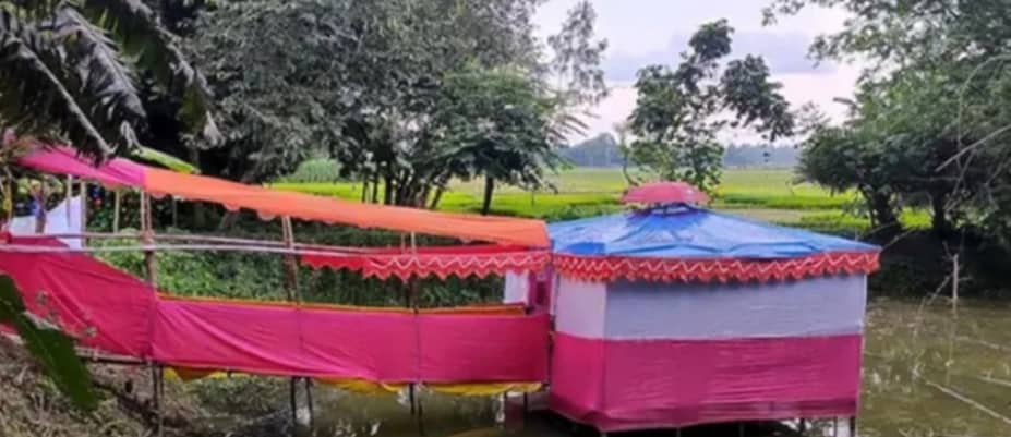 শেরপুর জেলা সদরের ২ নং চরশেরপুর ইউনিয়নের সাতানীপারা গ্রামের আঃহামিদ ও চম্পা বেগম দম্পতির ছেলে ঝালাই মিস্ত্রি আঃহালিম (২৬) সমপ্রতি তার বিয়ের আয়োজন করে এক অভিনব পন্থায়। । হালিম বলেন,বিয়ের কথা পাকা হওয়ার পর ব্যাতিক্রম কিছু করার। এই নিয়ে নানা ওচাচার সাথে কথা বলে পানির উপর বাস ঘর তৈরি উদ্যোগ নিয়ে পাচ দিনে বাসর ঘর তৈরি করা হয়। এখবড় ছড়িয়ে পরতেই আশেপাশের নানা লোকজন নানা কথা বলে ঘরটি দেখে যায় অনেকেই বলেছে খুবই ভালো লেগেছে। হালিমের চাচা বলেন ভাতিজার ইচ্ছার প্রতিফলন তাই আমরা করে ফেললাম। ২ নং চরশেরপুর ইউনিয়নের চেয়ারম্যান মোঃ সেলিম রেজা বলেন, আমার ইউনিয়নের কোন বিয়েতে এমন আয়োজন আজও হয়নি সাধারন মানুষের মাঝে হইচই ফেলে দিয়েছে। বিভিন্ন এলাকার মানুষ এ অভিন্ন বিয়ের আয়োজন দেখতে আসছেন বরকণের শুভকামনা করছেন।