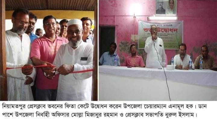 প্রেসক্লাবের রেকর্ড সূত্রে জানা যায়, ২০১১ সালে তিনি উপজেলা পরিষদ চেয়ারম্যান থাকাকালীন সময়ে প্রধান অতিথি থেকে নিয়ামতপুর প্রেসক্লাবের উদ্বোধন করেন।
