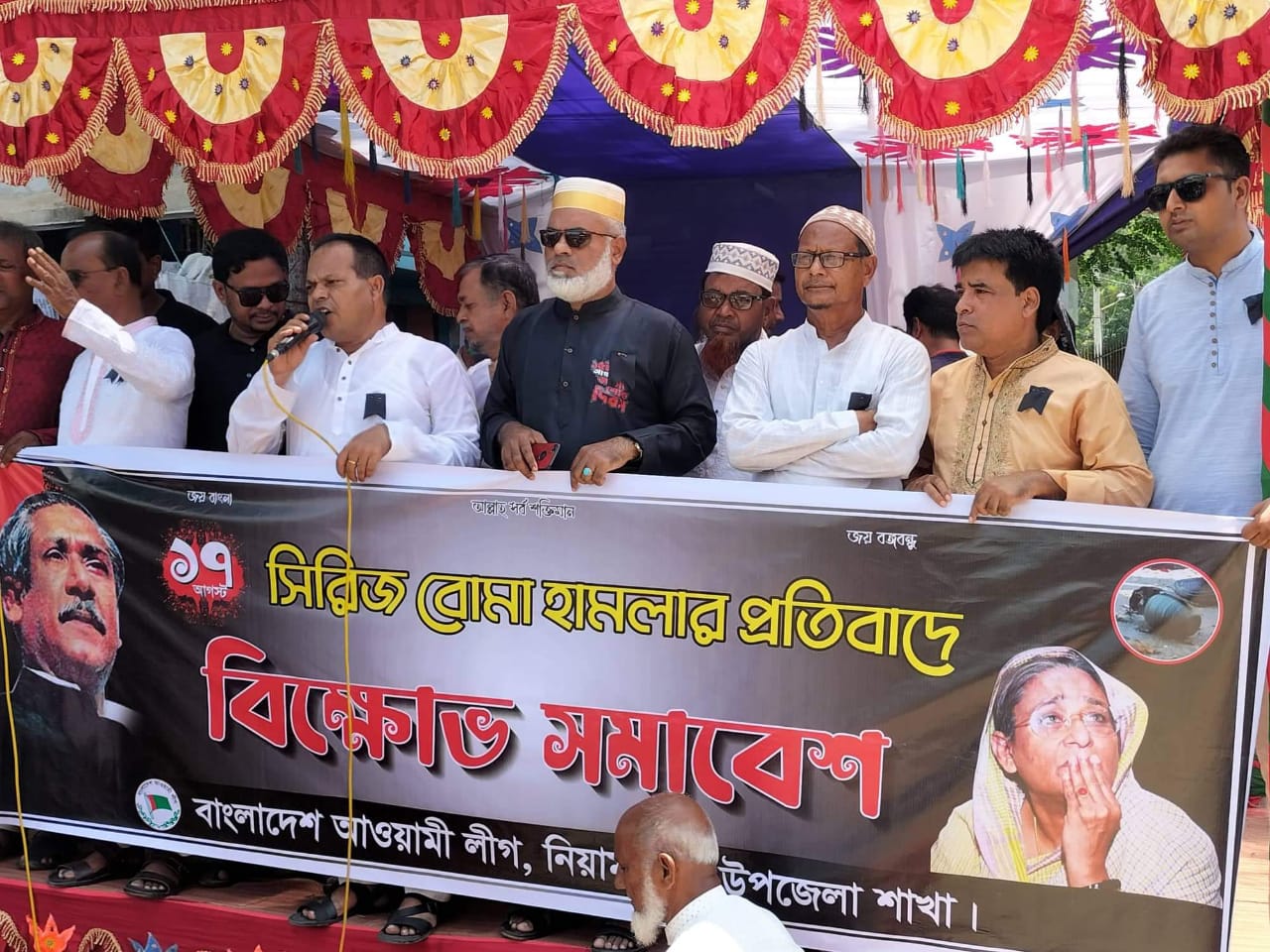 নওগাঁর নিয়ামতপুরে বিএনপি জামায়াত জোট সরকারের আমলে সারাদেশ ব্যাপী সিরিজ বোমা হামলার প্রতিবাদে বিক্ষোভ মিছিল ও সমাবেশ অনুষ্ঠিত হয়েছে। ১৭ আগস্ট সকাল ১১ ঘটিকায় উপজেলা আওয়ামী লীগের উদ্যোগে উপজেলা আওয়ামী লীগ কার্যালয় থেকে বিক্ষোভ মিছিল বের হয়ে উপজেলা চত্বরে এসে শেষ হয়ে বিক্ষোভ সমাবেশ অনুষ্ঠিত হয়। আলোচনা সভায় উপজেলা আওয়ামী লীগের সাধারণ সম্পাদক জাহিদ হাসান বিপ্লবের সঞ্চালনায় সমাবেশে সভাপতিত্ব করেন উপজেলা আওয়ামী লীগের সভাপতি আবুল কালাম আজাদ। এ সময় আরও বক্তব্য রাখেন উপজেলা আওয়ামী লীগের সহ-সভাপতি ও উপজেলা পরিষদ চেয়ারম্যান ফরিদ আহম্মেদ, সদস্য আবেদ হোসেন মিলন, ভাবিচা ইউনিয়ন আওয়ামী লীগের সাধারণ সম্পাদক উৎপল সরকার পিন্টু, মহিলা আওয়ামী লীগের সভাপতি ও মহিলা ভাইস চেয়ারম্যান নাদিরা বেগম, উপজেলা আওয়ামী যুবলীগের সাধারণ সম্পাদক মোত্তালিব হোসেন বাবর, স্বেচ্ছাসেবক লীগের আহ্বায়ক হুমায়ুন কবির, ছাত্র লীগের আহ্বায়ক জাহাঙ্গীর আলম প্রমূখ।