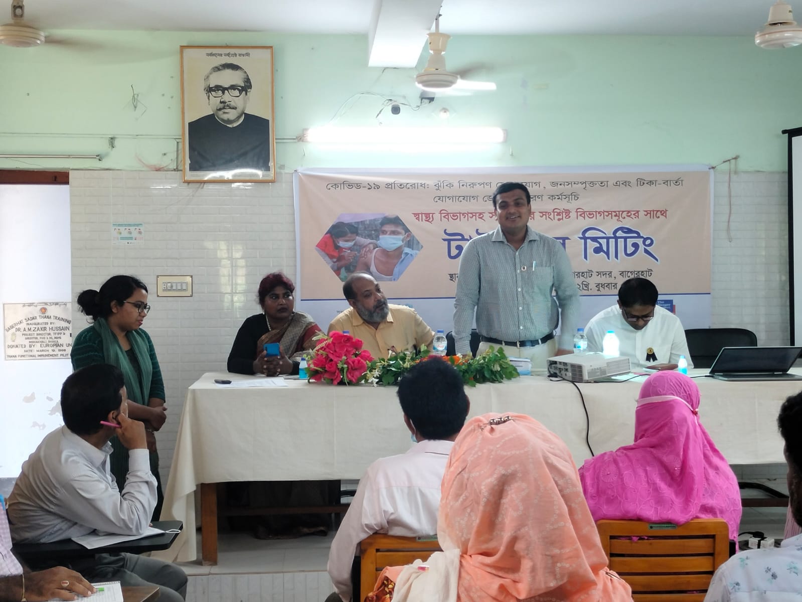 বক্তারা কোভিড ১৯ প্রতিরোধে ঝুকি নিরুপণ বাগেরহাটে কোভিড টিকা নিশ্চিতে সভাযোগাযোগ এবং সবাইকে টিকার আওতায় আনার বিভিন্ন কৌশল তুলে ধরা হয়েছে যাতে করে সবাই টিকা দিতে আগ্রহী হয়।