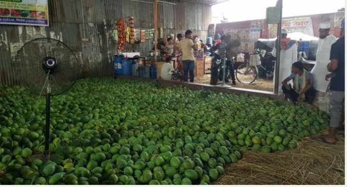 “প্রতি মণ গোবিন্দভোগ আম বাজারে বিক্রি হয় ২৫০০ টাকা। সেই আম আজ সোমবার বিক্রি হচ্ছে ১৮০০-১৯০০ টাকায়। এতে চাষীরাও ক্ষতিগ্রস্ত হচ্ছে আবার ব্যবসায়ীরাও ক্ষতিগ্রস্ত হচ্ছে।” ঘূর্ণিঝড় অশনির প্রভাব পড়েছে সাতক্ষীরার আম বাজারে। ব্যবসায়ীরা গাছ থেকে দ্রুত আম ভেঙে নিচ্ছেন। এতে বাজারে আমের সরবরাহ কয়েকগুণ বেড়ে গেছে, কমেছে আমের দাম। এতে ক্ষতিগ্রস্ত হচ্ছেন ও ব্যবসায়ীরা। সাতক্ষীরার বড় বাজারের আম আড়ত ব্যবসায়ী সেমার্স জান্নাতুল বানিজ্য ভান্ডারের সত্ত্বাধিকারী আব্দুল হামিদ জানান, ঝড়ের আতঙ্কে গাছ থেকে চাষীরা আম ভেঙে বাজারে নিয়ে আসছেন। বাজারে আমের দাম একেবারেই কমে গেছে। “প্রতি মণ গোবিন্দভোগ আম বাজারে বিক্রি হয় ২৫০০ টাকা। সেই আম আজ সোমবার বিক্রি হচ্ছে ১৮০০-১৯০০ টাকায়। এতে চাষীরাও ক্ষতিগ্রস্ত হচ্ছে আবার ব্যবসায়ীরাও ক্ষতিগ্রস্ত হচ্ছে।” জেলা কৃষি সম্প্রসারণ অধিদপ্তরের তথ্যমতে, জেলায় গত বছর ৪ হাজার ১১০ হেক্টর জমিতে আমের আবাদ হয়েছিল। চলতি বছর ৪ হাজার ১১৫ হেক্টর জমিতে আমের আবাদ হয়েছে। আবাদ বাড়লেও এ বছর ৫০ ভাগ গাছেই আম হয়নি। জেলায় ৫ হাজার ২৯৯টি আমবাগান ও ১৩ হাজার আমচাষী আছে। সাতক্ষীরার শিবপুর গ্রামের আম ব্যবসায়ী রাশেদুল ইসলাম শহরের বড় বাজারে আমের আড়তে ১০ মন আম বিক্রি করতে এসেছেন। তিনি বলেন, “গাছ থেকে গোবিন্দভোগ আম সব ভেঙে নিয়ে এসেছি। শুনেছি ঝড় আসবে সেকারণে আগেভাগেই ভেঙেছি। ঝড় হলে তখন আমগুলো সব নষ্ট হয়ে যাবে।” রাজধানীর যাত্রাবাড়ির রুজেন ফ্রুটস থেকে সাতক্ষীরার বড়বাজারে আম কিনতে এসেছেন লুৎফর রহমান খান। তিনি বলেন, “দেশের মধ্যে সর্বপ্রথম সাতক্ষীরার আম বাজারে আসে। ঢাকা থেকে এখানে আম কিনতে এসেছি। বাজারে গোবিন্দভোগ, গোপালভোগসহ ভালো আম পাওয়া যাচ্ছে। তবে যেভাবে ধারণা করেছিলাম তার থেকেও কম দামে আম পাচ্ছি। মূলত ঝড় আসার খবরে আমের দাম কমে গেছে।” সাতক্ষীরা আম ব্যবসায়ী সমিতির সাধারন সম্পাদক আব্দুর রহিম জানান, “প্রতিদিন ১০-১২টি ট্রাক করে আম যাচ্ছে ঢাকা, চট্টগ্রামসহ দেশের বিভিন্ন স্থানে। আম্পান, ইয়াস, করোনা এসব কারণে আম ব্যবসায়ীরা গত কয়েক বছর ধরে অনেক ক্ষতিগ্রস্ত হচ্ছে। এ বছর এমনিতে গাছে আমের ফলন কম তারপর প্রাকৃতিক দুর্যোগের কারণে আম ব্যবসায়ীরা ক্ষতিগ্রস্ত হচ্ছে।” সাতক্ষীরা কৃষি সম্প্রসারণ অধিদপ্তর খামারবাড়ির উপ পরিচালক নুরুল ইসলাম বলেন, “আমাদের কাছে তথ্য আছে এদিকে ঝড় হবে না তবে বৃষ্টিপাত হতে পারে। এখন ঝড় আতঙ্কে যদি আম চাষী বা ব্যবসায়ীরা গাছ থেকে কাঁচা আম পেড়ে নেয় সেখানে আমরা কী করতে পারি। তবে আম চাষী ব্যবসায়ীদের আতঙ্কিত না হওয়ার পরামর্শ থাকবে।”