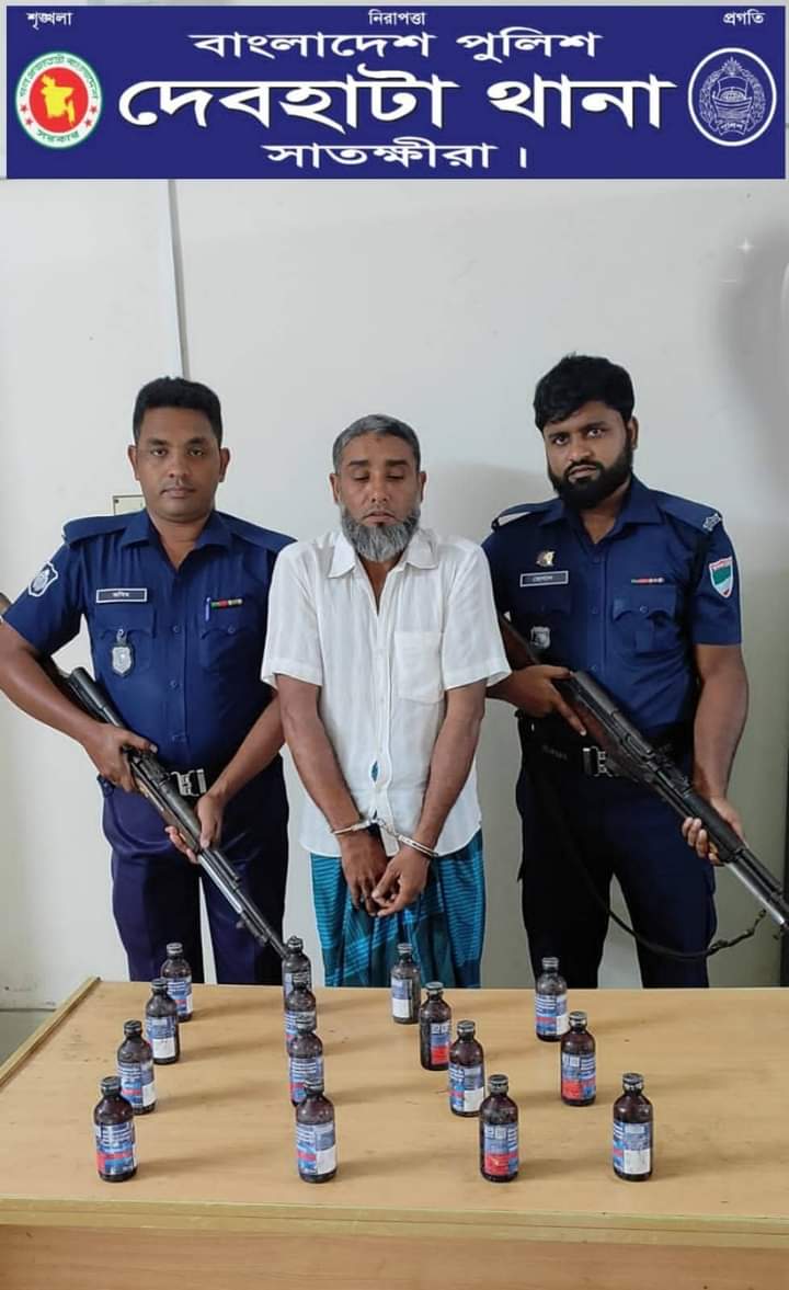 সাতক্ষীরা জেলার সুযোগ্য পুলিশ সুপার জনাব মোহাম্মদ মোস্তাফিজুর রহমান পিপিএম (বার) মহোদয়ের দিক নির্দেশনায় অতিরিক্ত পুলিশ সুপার (প্রশাসন ও অপরাধ) জনাব মোঃ সজীব খান মহোদয়, অতিরিক্ত পুলিশ সুপার (ক্রাইম অ্যান্ড অপস্) জনাব কনক কুমার দাস ও সিনিয়র সহকারী পুলিশ সুপার (দেবহাটা সার্কেল) জনাব এসএম জামিল আহমেদ স্যারের সার্বিক তত্ত্বাবধানে এবং দেবহাটা থানার সুযোগ্য অফিসার ইনচার্জ জনাব শেখ ওবায়দুল্লাহ স্যারের নেতৃত্বে দেবহাটা থানা এলাকায় আইন-শৃঙ্খলা রক্ষা, গ্রেফতারী পরোয়ানা তামিল, মাদকউদ্ধার ও বিশেষ অভিযান পরিচালনা কালে ইং ২১/০৮/২০২২ তারিখ, এসআই(নিঃ) মাহাবুর রহমান সঙ্গীয় ফোর্সসহ দেবহাটা থানাধীন ৪ নং নওয়াপাড়া ইউনিয়নের উত্তর নাংলা হইতে ১৫ (পনের) বোতল ফেন্সিডিলসহ আসামী ১। মোঃ হাফিজুল ইসলাম(৫০), পিতা-মৃত ওহাব আলী মৃধা ,স্থায়ী: গ্রাম- ছুটিপুর, উপজেলা/থানা- দেবহাটা, জেলা -সাতক্ষীরাকে গ্রেফতার করেন। এ সংক্রান্তে দেবহাটা থানায় একটি মাদকমালা রুজু করা হয়। আসামীকে ইং-২২/০৮/২২ খ্রিঃ বিজ্ঞ আদালতের মাধ্যমে জেল হাজতে প্রেরণ করা হয়।
