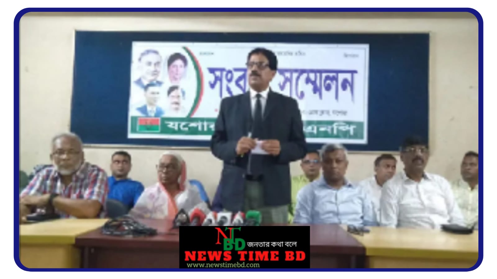 সংবাদ সম্মেলনে লিখিত বক্তব্য পাঠ করেন জেলা বিএনপির সদস্য সচিব অ্যাডভোকেট সৈয়দ সাবেরুল হক সাবু।