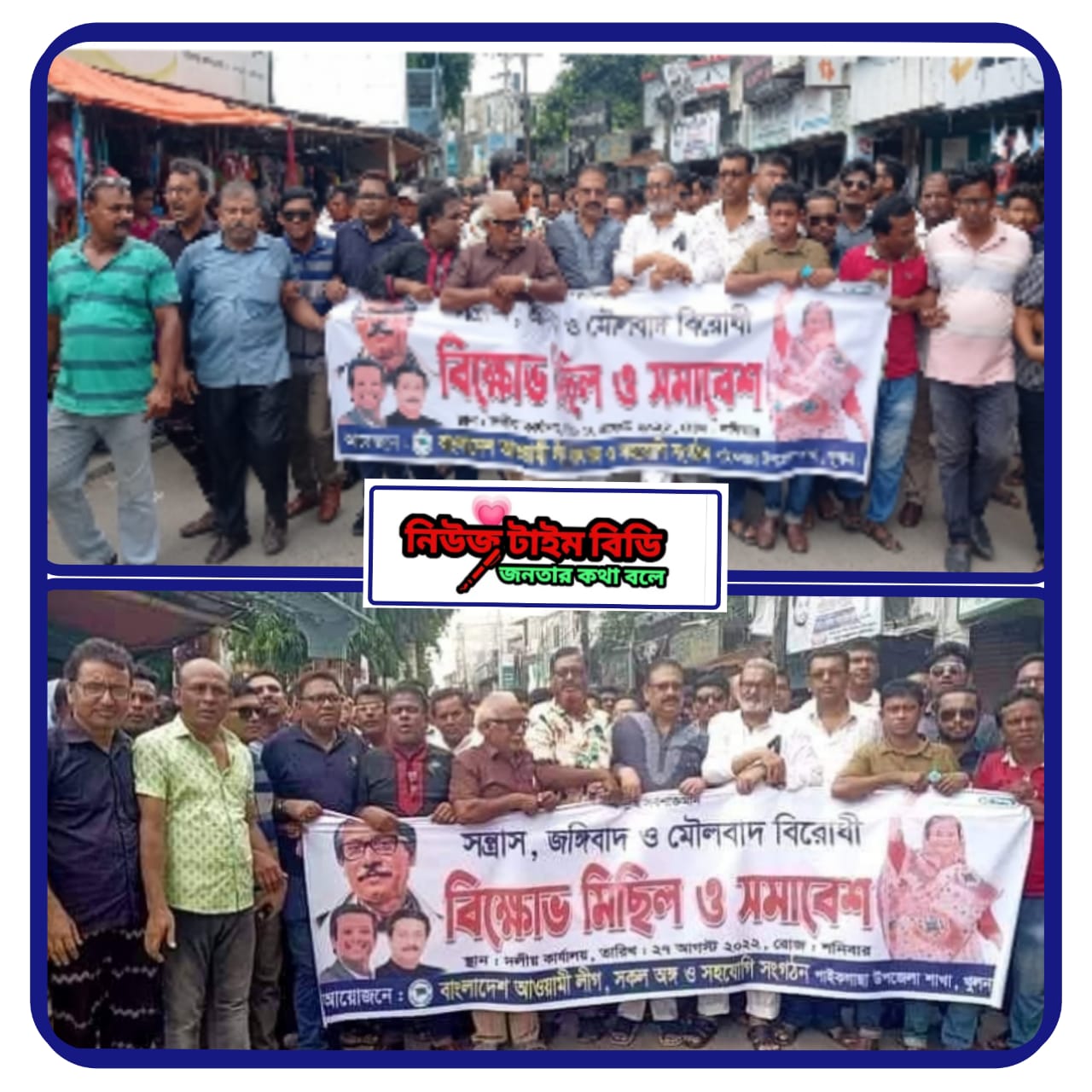 পাইকগাছা উপজেলা আ”লীগের উদ্যোগে সন্ত্রাস, জঙ্গীবাদ , মৌলবাদ বিরোধী বিক্ষোভ মিছিল ও সমাবেশ অনুষ্ঠিত হয়েছে।২৭ আগষ্ট (শনিবার) সকাল ১০ টায় উপজেলা আ”লীগের দলীয় কার্যলয়ে থেকে মিছিলটি শুরু হয়ে পাইকগাছা বাজারের গুরুত্বপূর্ণ সড়ক প্রদক্ষিণ করে পুনারায় দলীয় কার্যালয়ে এসে শেষ হয় ৷অতপর উপজেলা চেয়ারম্যান ও উপজেলা আ”লীগের সভাপতি মোঃ আনোয়ার ইকবাল মন্টুর সভাপতিত্বে ও সাধারণ সম্পাদক শেখ কামরুল হাসান টিপুর সঞ্চালনায় আলোচনা সভা অনুষ্ঠিত হয় ৷ এ সময় বক্তব্য রাখেন সাবেক উপজেলা চেয়ারম্যান মোঃ রশীদুজ্জামান মোড়ল, উপজেলা আওয়ামীলীগের যুগ্ম সাধারণ সম্পাদক আনন্দ মোহন বিশ্বাস, উপজেলা ভাইচ চেয়ারম্যান মোঃ শিহাবুদ্দীন ফিরোজ বুলু, উপজেলা যুবলীগ নেতা জি এম ইকরামুল হোসেন , কপিলমুনি প্রেস ক্লাবের সাধারণ সম্পাদক ও উপজেলা যুবলীগ প্রস্তুতি কমিটির সিনিয়র সদস্য গাজী আব্দুর রাজ্জাক রাজু ,উপজেলা ছাত্রলীগের সাবেক সহ সভাপতি শেখ আবুল কালাম আজাদ ,উপজেলা ছাত্রলীগের সভাপতি পার্থ প্রীতম চক্রবর্তী প্রমুখ ৷ এ সময় আরও উপস্থিত ছিলেন বিভিন্ন ইউনিয়ন থেকে আগত আ”লীগ ও এর সহোযোগী সংগঠনের নেতৃবৃন্দ ৷