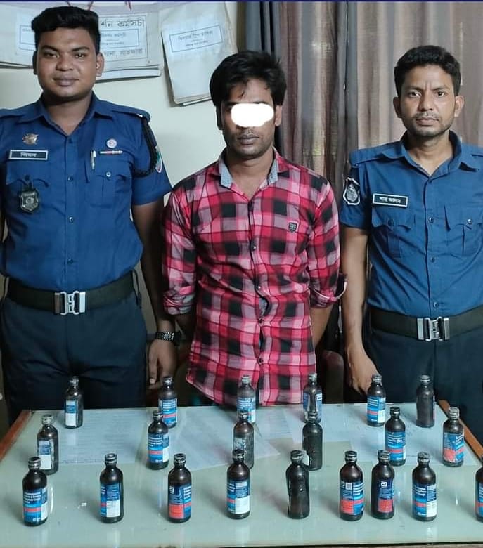 সাতক্ষীরা জেলার সুযোগ্য পুলিশ সুপার জনাব কাজী মনিরুজ্জামান, পিপিএম (বার) মহোদয়ের দিক নির্দেশনায়, অতিরিক্ত পুলিশ সুপার, কালিগঞ্জ সার্কেল জনাব মোঃ আমিনুর রহমান স্যারের তত্ত্বাবধানে অফিসার ইনচার্জ জনাব মোঃ হালিমুর রহমান এর নেতৃত্বে কালিগঞ্জ থানার অফিসার ফোর্স বিশেষ অভিযান করিয়া ইং-২৯/০৮/২০২২ তারিখ ২১ বোতল ফেনসিডিল সহ ০১(এক) জন আসামী গ্রেফতার করেন।