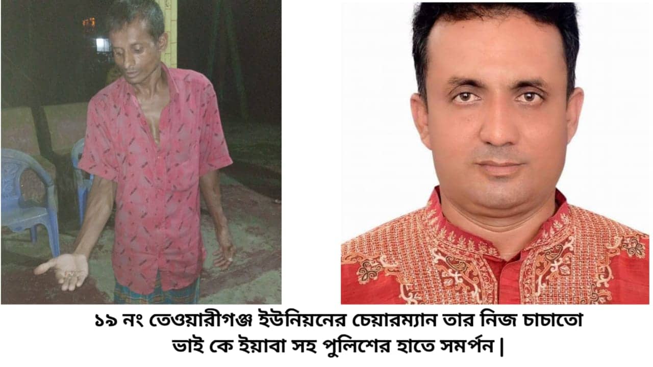 ১৯ নং তেওয়ারীগঞ্জ ইউনিয়নের চেয়ারম্যান তার নিজ চাচাতো ভাই কে ইয়াবা সহ পুলিশের হাতে সমর্পন করেছেন। লক্ষীপুর জেলার লক্ষ্মীপুর সদর থানার ১৯ নং তেওয়ারীগঞ্জ ইউনিয়নের চেয়ারম্যান ওমর হুসাঈদ ভুলু গত কাল রাত ১২ ঘটিকার সময় তার নিজ বাড়ির সামনে তার আপন চাচাতো ভাই( জহির হোসেন) কে ইয়াবা সহ হাতে নাতে ধরে পুলিশের হাতে তুলে দিয়েছেন। এ ব্যাপারে সদর থানায় একটি মাদক মামলা রুজু করা হয়েছে। আসামিকে কোর্টের মাধ্যমে জেল হাজতে প্রেরণ করা হয়েছে। চেয়ারম্যানের এ রকম মহৎ কাজ দেখে লক্ষ্মীপুর জেলার তেওয়ারীগঞ্জ ইউনিয়নের সকল জনগন সাধুবাদ জানিয়েছেন। নাম প্রকাশে অনিচ্ছুক জনৈক ব্যক্তি বলেন চেয়ারম্যান সাহেব দীর্ঘদিন যাবত মানুষের সেবা করে যাচ্ছেন। তিনি কোন প্রকার অনৈতিক কাজ পছন্দ করেন না। অনৈতিক কাজের জন্য আপনজনকেও ছাড় দেন না। উক্ত চেয়ারম্যান পেয়ে ইউনিয়ন বাসী গর্বিত।