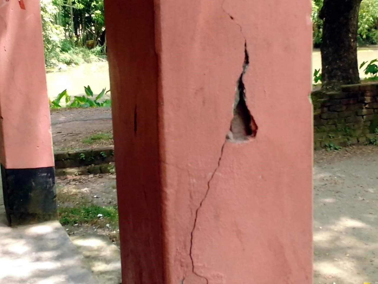 গত কয়েক মাস আগেও এই ভবনটি সংস্কার করায় বাহির থেকে দেখে ফিটফাট মনে হলেও বর্তমানে ভবনটি নাজুক অবস্থায় রয়েছে। ভবনের পলেস্তারা খসে খসে পড়ছে। ভবনের পিলার ও সিলিংয়ের পলেস্তারা খসে পরে লোহার রড বের হয়ে গেছে। বর্ষাকালে ছাদ থেকে পানি পরে। বিদ্যালয়ে অন্যকোন ভবন না থাকায় বাধ্য হয়েই ঝুঁকিপূর্ণ ভবনের মধ্যেই পাঠদান কার্যক্রম চালিয়ে যাচ্ছেন স্কুলকর্তৃপক্ষ। এখন যে কোন সময় ভবনটি ধসে পড়তে পারে। এতে শিক্ষক-শিক্ষার্থী, অভিভাবকরা সব সময় অতঙ্কে থাকে। ফলে শিক্ষার্থীদের পাঠদান কার্যক্রম ব্যাহত হচ্ছে।