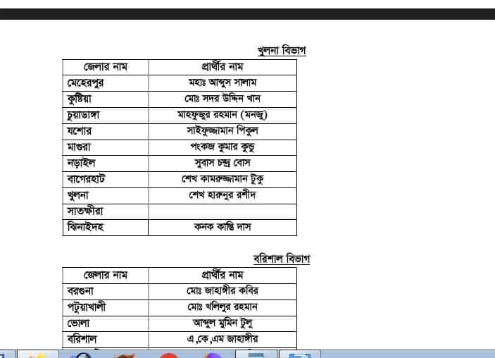 তবে, গত নির্বাচনে বিদ্রোহী প্রার্থী হিসেবে নির্বাচিত হয়ে সাতক্ষীরা জেলা আওয়ামী লীগের সাধারণ সম্পাদক মোঃ নজরুল ইসলামের নাম ৬১ জনের তালিকায় প্রকাশ হলেও পরে সাতক্ষীরা জেলার মনোনীত প্রার্থীর ঘর ফাকা রেখে তালিকা প্রকাশ করা হয়।