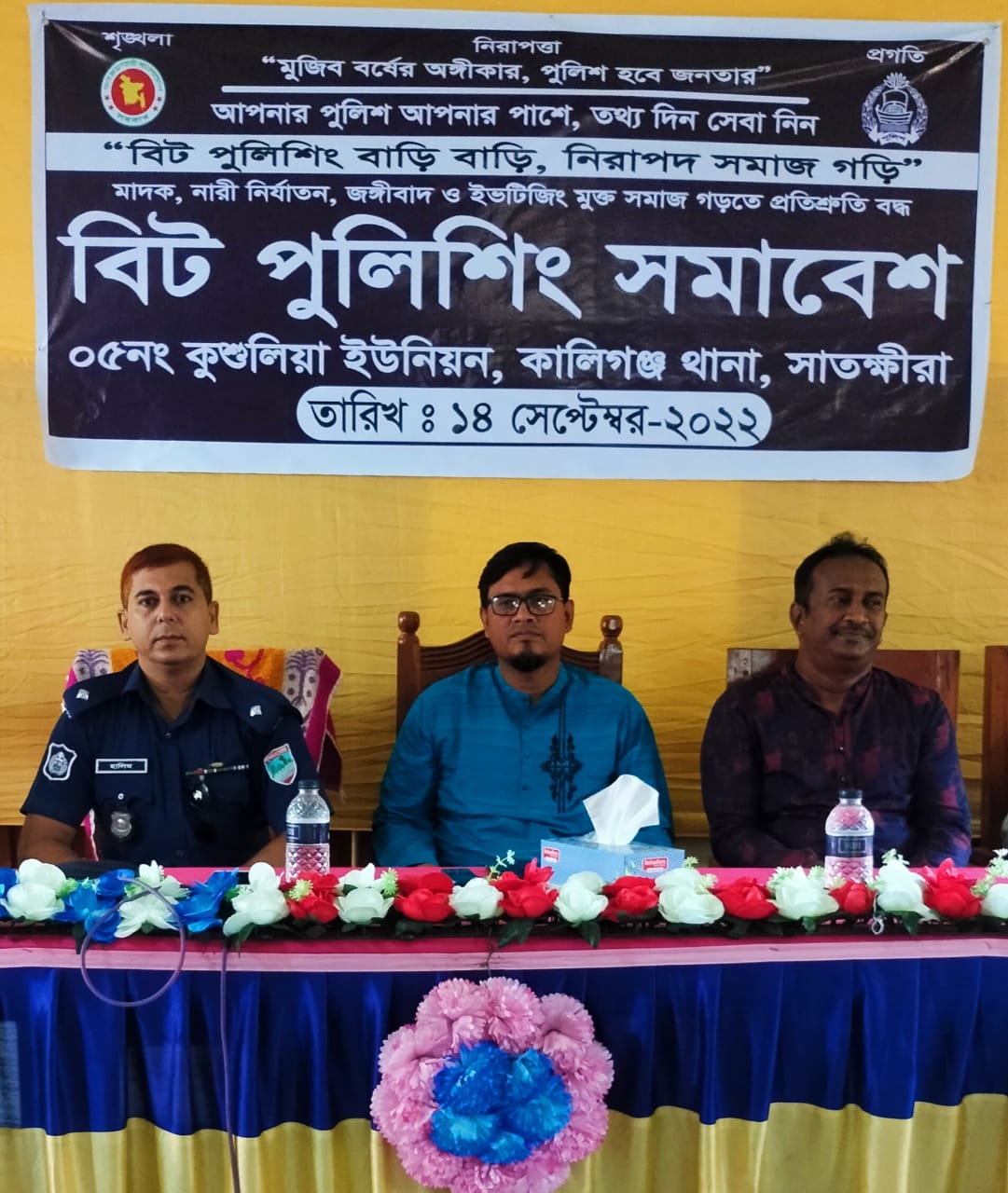 মুজিব বর্ষের অঙ্গীকার,পুলিশ হবে জনতার, আপনার পুলিশ আপনার পাশে তথ্য দিন সেবা নিন, বিট পুলিশিং বাড়ি বাড়ি নিরাপদ সমাজ গড়ি ,মাদক নারী নির্যাতন জঙ্গিবাদ ইভটিজিং মুক্ত সমাজ গড়তে কালিগঞ্জ থানা প্রতিশ্রুতিবদ্ধ।।। আজ ৫ নাম্বার কুশুলিয়া ইউনিয়ন পরিষদের আয়োজনে সুযোগ্য চেয়ারম্যান জনাব আবুল কাশেম মোহাম্মদ আব্দুল্লাহর সভাপতিত্বে শেখ শাওন আহমেদ সোহাগ ভাইয়ের সার্বিক পরিচালনায় প্রধান অতিথি হিসেবে উপস্থিত ছিলেন কালিগঞ্জ থানার সুযোগ্য মানবিক অফিসার ইনচার্জ জনাব মোঃ হালিমুর রহমান বাবু মহোদয় বলেন,বাল্যবিবাহ নিরোধ, মাদকাসক্ত নিরোধ, জঙ্গিবাদ নির্মূল, আইন-শৃঙ্খলা পরিস্থিতি স্বাভাবিক রাখা,সামাজিক সম্প্রীতি গড়ে তোলা ও সামাজিক সচেতনতা তৈরির লক্ষ্যে সকল গ্রাম পুলিশদেরকে নির্দেশনা প্রদান করা হয়েছে। বিশেষ অতিথি হিসাবে উপস্থিত ছিলেন কালিগঞ্জ থানার সেকেন্ড অফিসার এস আই শেখ খবির হোসেন কুশুলিয়া ইউনিয়ন বিট অফিসার এস আই মনির হোসেন সহ উক্ত মতবিনিময় সভায় সম্মানিত অতিথি হিসাবে উপস্থিত ছিলেন বিশিষ্ট ব্যবসায়ী ও সমাজসেবক শেখ ফিরোজ কবির কাজল ভাই কুশুলিয়া ইউনিয়ন পরিষদের সচিব জনাব মোঃ কামরুজ্জামান সহ ওয়ার্ড আওয়ামী লীগের সভাপতি সাধারণ সম্পাদকসহ ইউনিয়ন আওয়ামী লীগের সভাপতি জনাব কাজী কাওফিল আরা সজল সাধারণ সম্পাদক সকল ইউপি সদস্য ইউনিয়নের সকল মসজিদ মাদ্রাসার সভাপতি ইমাম সহ ইউনিয়নের সকল দুর্গা মন্দিরের পুরোহিত সভাপতি সাধারণ সম্পাদকসহ এলাকার আপামর জনসাধারণ উপস্থিত ছিলেন।