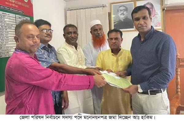 আশাশুনি উপজেলা থেকে সাতক্ষীরা জেলা পরিষদ নির্বাচনে সদস্য পদে প্রতিদ্বন্দ্বিতার লক্ষে আব্দুল হাকিম মনোনয়ন পত্র জমা দিয়েছেন। বুধবার জেলা নির্বাচন অফিসে তিনি মনোনয়ন পত্র জমা দেন। আশাশুনি উপজেলার কুল্যা ইউনিয়নের কচুয়া গ্রামের আমেরিকা প্রবাসী মোঃ আব্দুল হাকিম এদিন জেলা নির্বাচন অফিসার ফরাজী বেনজির আহমেদের কাছে সদস্য পদে মনোনয়নপত্র জমা দেন। মনোনয়নপত্র জামাদানের সময় কুল্যা ইউপি চেয়ারম্যান এস এম ওমর সাকি ফেরদৌস পলাশ, ইউপি সদস্য আলহাজ্ব আঃ মাজেদ গাজী, আব্দুল হান্নান সরদার, আলমগীর হোসেন আঙ্গুর, আব্দুল কাদের গাজী, বিউটি কবির, নজরুল ইসলাম, উত্তম কুমার দাশ, আব্দুল কাদের সানা, বশির আহমেদ টুকু, আব্দুর রশিদ, তাহেরা বিশ্বাস, আরতী সরকার প্রমুখ উপস্থিত ছিলেন।