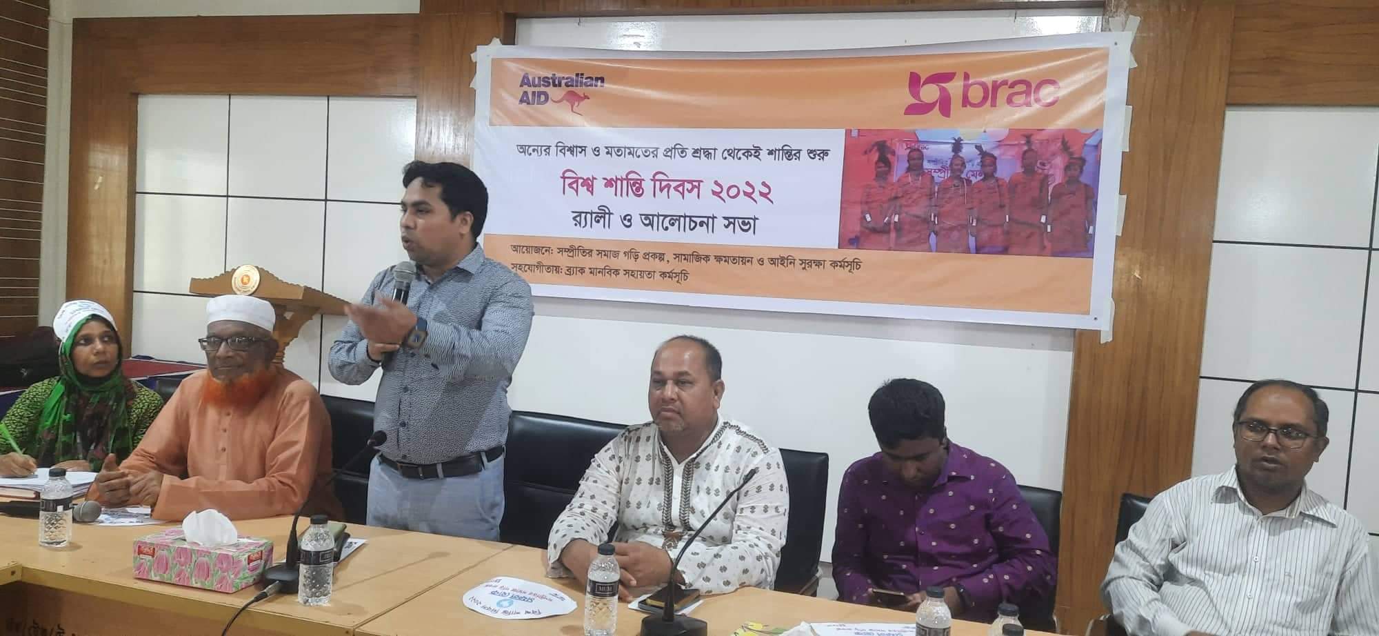 কক্সবাজারের টেকনাফে অন্যের বিশ্বাস ও মতামতের প্রতি শ্রদ্ধা থেকেই শান্তির শুরু” প্রতিপাদ্যকে সামনে রেখে বিশ্ব শান্তি দিবস-২০২২ র্যালী ও আলোচনা সভা অনুষ্ঠিত হয়েছে। উপজেলা নির্বাহি অফিসার ভারপ্রাপ্ত ও সহকারী কমিশনার (ভূমি) এরফানুল হক চৌধুরীর সভাপতিত্বে অনুষ্ঠিত সভায় প্রধান অতিথি হিসাবে বক্তব্য রাখেন. উপজেলা চেয়ারম্যান নুরুল আলম। আলোচনা করেন. উপজেলা আওয়ামী লীগের সিনিয়র সহ-সভাপতি জহীর হোসেন এম এ.উপজেলা মহিলা বিষয়ক অফিসার শওকত হোসেন।সেক্টর স্পেশালিস্ট দায়িত্বে নিয়োজিত মিস জয়নব খাতুনের সঞ্চালনায় এবং প্রোগ্রাম অর্গানাইজার সুপন চাকমার সার্বিক ব্যবস্থাপনায় অনুষ্ঠানে সম্প্রীতির সমাজ গড়ি প্রকল্প.সামাজিক ক্ষমতায়ন ও আইনি সুরক্ষা কর্মসূচির আয়োজনে এবং ব্রাক মানবিক সহায়তা কর্মসূচির সহযোগিতায় ও অস্ট্রেলিয়ান অর্থায়ন অনুষ্ঠানে আলোচকবৃন্দ বিশ্বব্যাপী শান্তি প্রতিষ্ঠার লক্ষ্যে পারস্পরিক বন্ধুত্বপূর্ণ সম্পর্ক বজায় রাখা এবং একে অপরের প্রতি বিশ্বাস ও সহনশীল মনোভাব গড়ে তোলা.শান্তি সম্প্রীতি এবং গণতন্ত্র একসাথে মিলে আদর্শ দেশ গড়া.পরিবেশ সচেতনতা বা পরিবেশকে সুস্থ ভাবে বাঁচিয়ে রাখা.তরুণ প্রজন্মকে বিশ্বশান্তি প্রতিষ্ঠার জন্য কাজে লাগানো.একজন নাগরিকের শান্তিতে থাকার অধিকার আছে প্রতিটা মানুষকে সমান সম্মান দেওয়া.একে অপরের প্রতি সাহায্যের হাত বাড়িয়ে দেওয়া এবং সাম্প্রদায়িকতা ও হিংসার মাধ্যমে যে ক্ষতি মানব সভ্যতার হচ্ছে শান্তির মাধ্যমে জয় করা। অনুষ্ঠানে উপস্থিত ছিলেন. টেকনাফ উপজেলা সরকারি কর্মকর্তা ও কর্মচারী.শিক্ষক. শিক্ষার্থী ও গণ্যমান্য ব্যক্তিবর্গ। এর আগে উপজেলা পরিষদ চত্বরে একটি র্যালী প্রদক্ষিণ করা হয়।