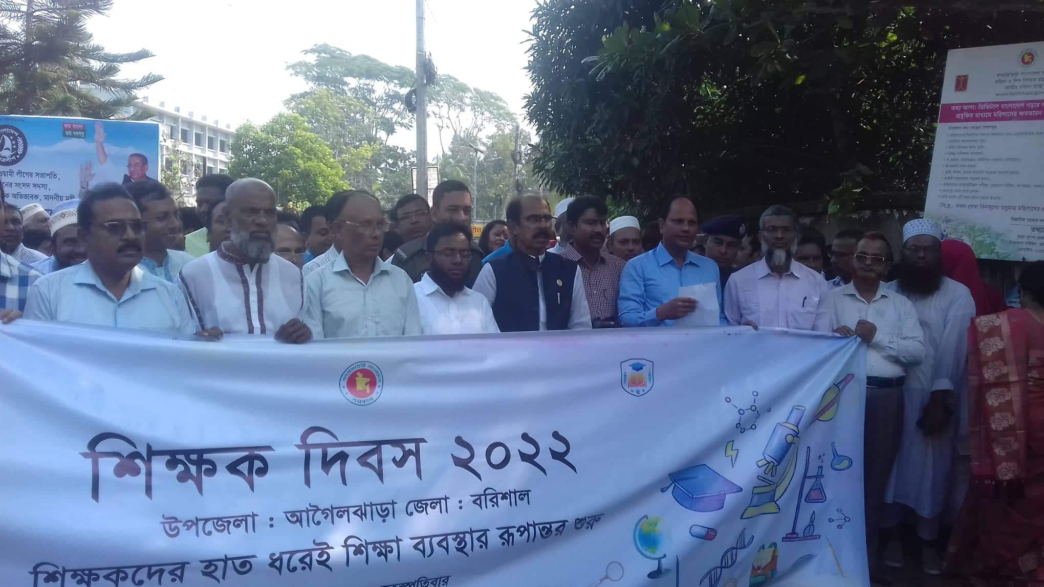 শিক্ষকদের হাত ধরেই শিক্ষা ব্যবস্থার রূপান্তর’ এই স্লোগানকে প্রতিপাদ্য করে বরিশালের আগৈলঝাড়ায় পালিত হয়েছে শিক্ষক দিবস। দিবসটি উদযাপনে বৃহস্পতিবার দুপুরে উপজেলা পরিষদ চত্বর থেকে একটি শোভাযাত্রা বের হয়ে শহরের বিভিন্ন সড়ক প্রদক্ষিণ শেষে শুরুরস্থলে এসে শেষ হয়।