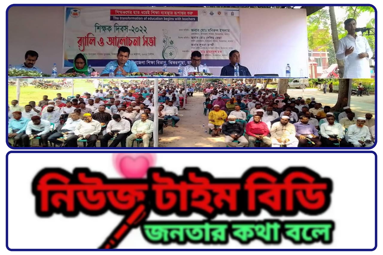 শিক্ষকদের হাত ধরেই শিক্ষা ব্যবস্থার রূপান্তর শুরু এই স্লোগানকে সামনে রেখে যশোরের ঝিকরগাছা উপজেলা শিক্ষা বিভাগের আয়োজনে র্যালি ও আলোচনা সভার মধ্যদিয়ে শিক্ষক দিবস পালিত হয়েছে। বৃহস্পতিবার সকালে উপজেলা পরিষদের মুক্তমঞ্চের অনুষ্ঠানে উপজেলা নির্বাহী অফিসার মোঃ মাহবুবুল হক’র সভাপতিত্বে প্রধান অতিথি ছিলেন উপজেলা পরিষদের চেয়ারম্যান মোঃ মনিরুল ইসলাম। তিনি তার বক্তব্যে বলেন, সোনার বাংলা তৈরি করতে হলে দেশে সোনার শিক্ষক থাকতে হবে। সোনার শিক্ষকদের হাত ধরেই এই দেশটা বঙ্গবন্ধুর সোনার বাংলা হিসেবে গড়ে উঠবে। উপজেলা মাধ্যমিক শিক্ষা অফিসার এম কামরুজ্জামান জাহাঙ্গীর এর স্বাগত বক্তব্য ও উপজেলা একাডেমিক সুপারভাইজার মোঃ কামরুজ্জামান এর সঞ্চালনায় অনুষ্ঠানে বিশেষ অতিথি ছিলেন উপজেলা পরিষদের ভাইস চেয়ারম্যান মোঃ সেলিম রেজা, মহিলা ভাইস চেয়ারম্যান লুবনা তাক্ষী, সহকারী উপজেলা মাধ্যমিক শিক্ষা অফিসার মোহাম্মদ সাহিদুল ইসলাম, শহীদ মশিউর রহমান ডিগ্রী কলেজের ভারপ্রাপ্ত অধ্যক্ষ বিপ্লব কুমার সেন, বিএম হাই স্কুলের প্রধান শিক্ষক আব্দুস সামাদ, বেজিয়াতলা আলিম মাদ্রাসার অধ্যক্ষ দ্বীন ইসলাম, সরকারি কৃষ্ণনগর মডেল প্রাথমিক বিদ্যালয়ের প্রধান শিক্ষক আকিফুজ্জামানসহ উপজেলার সকল প্রাথমিক, মাধ্যমিক ও মাদ্রাসার প্রধানগণ।
