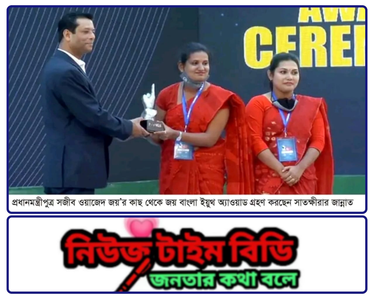 প্রসঙ্গত: সারাদেশ থেকে আবেদন করা দেশ গঠনে এগিয়ে আসা তরুণদের ৬০০টিরও বেশি সংগঠন থেকে যাচাইবাছাই শেষে শীর্ষ ১০ তরুণ সংগঠনের হাতে জয় বাংলা ইয়ুথ অ্যাওয়ার্ড তুলে দেন প্রধানমন্ত্রীপুত্র।