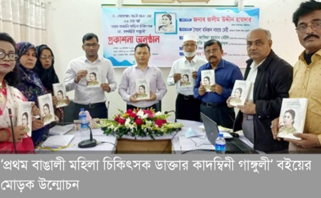 বাংলাদেশে এই প্রথমবার দক্ষিণ এশিয়ার প্রথম মহিলা ডাক্তার কাদম্বিনী গাঙ্গুলীকে নিয়ে লেখা বইয়ের মোড়ক উন্মোচন। উনিশ শতকের শেষভাগে চিকিৎসায় ডিগ্রি অর্জনকারী দক্ষিণ এশিয়ার প্রথম বাঙালী নারী চিকিৎসক ডাঃ কাদম্বিনী গাঙ্গুলীকে নিয়ে লেখা “প্রথম বাঙালী মহিলা চিকিৎসক ডাক্তার কাদম্বিনী গাঙ্গুলী” নামক বইয়ের মোড়ক উন্মোচন করা হয়েছে।