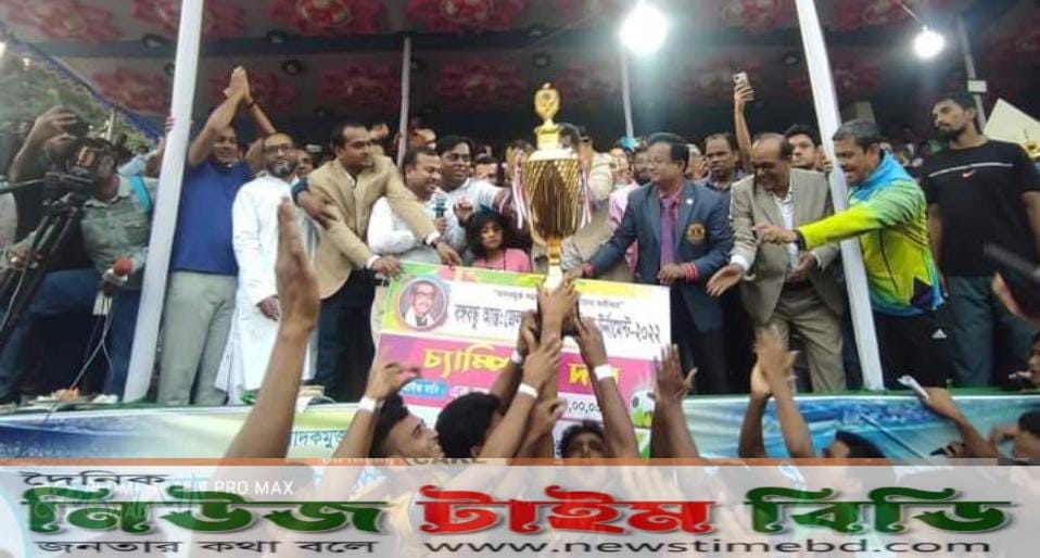 আজ ১৬ নভেম্বর ২০২২ ইং বুধবার বিকাল সাড়ে তিনটার সময় উক্ত হাইভোল্টেজ ফাইনাল ম্যাচে শিবগঞ্জ উপজেলা দল টাঙ্গাইল জেলা দলকে ১-০ গোলে পরাজিত করে শিবগঞ্জ উপজেলা দল চ্যাম্পিয়ন হওয়ার গৌরব অর্জন করা ফুটবল দলকে ১,০০০০০/-(এক লক্ষ টাকা) প্রাইজমানি এবং টাঙ্গাইল জেলা দল রানার্সআপকে ৫০,০০০/- (পঞ্চাশ হাজার টাকা) প্রাইজমানি দেওয়া হয়।