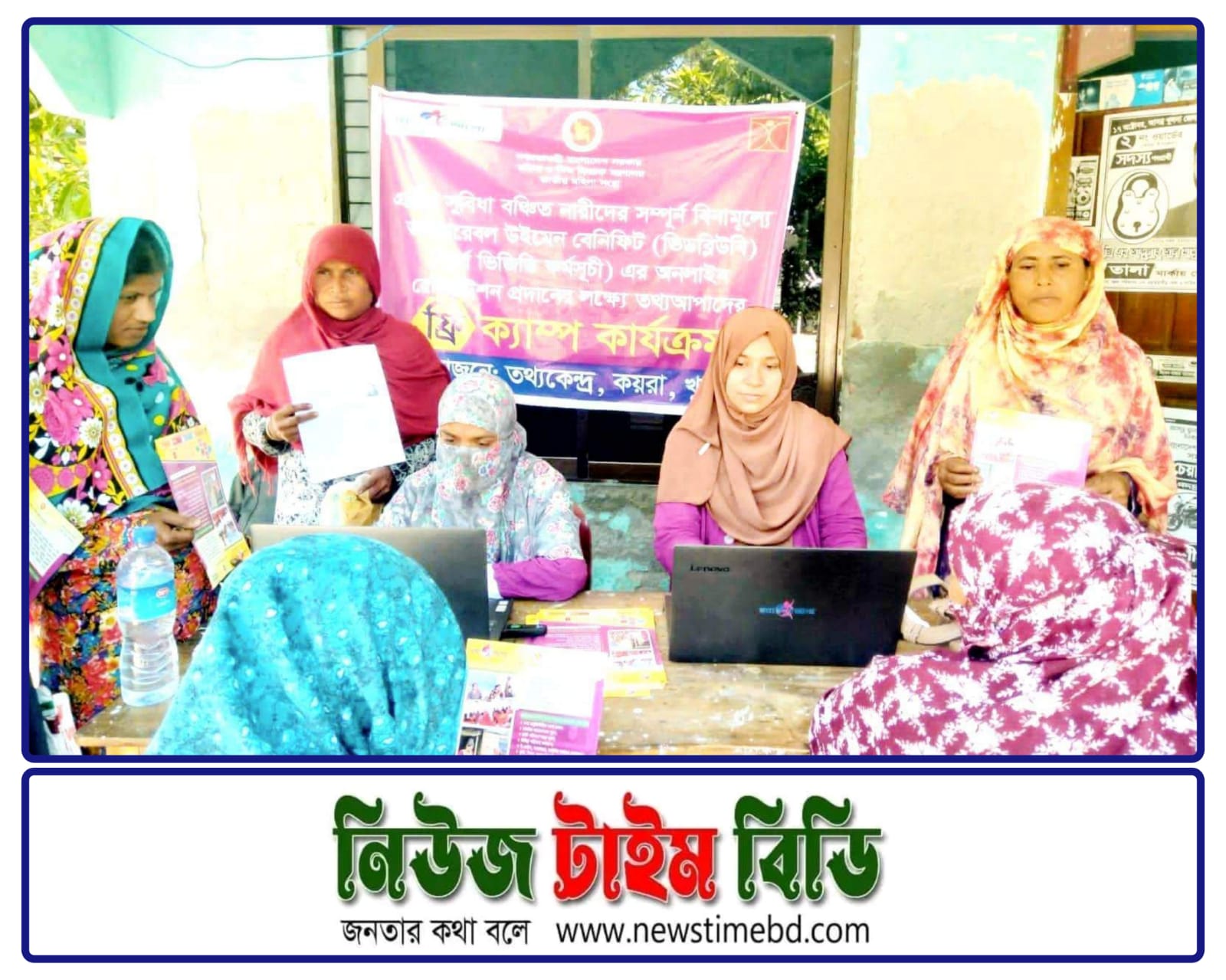 খুলনা জেলার কয়রা উপজেলার বাগালী ইউনিয়নে গ্রামীণ সুবিধা বঞ্চিত নারীদের সম্পূর্ণ বিনামূল্যে ভালনারেবল উইমেন বেনিফিট-ভিডব্লিউবি (পূর্বে ভিজিডি কর্মসূচী) এর অনলাইন রেজিষ্ট্রেশন প্রদানের লক্ষ্যে তথ্য আপাদের ফ্রী ক্যাম্প কার্যক্রম প্রশিক্ষণ অনুষ্ঠিত হয়েছে। ২০শে নভেম্বর (রোববার) সকাল১০ থেকে বেলা ২টা পর্যন্ত উপজেলার বাগালী ইউনিয়ন পরিষদের কক্ষে জাতীয় মহিলা সংস্থা কর্তৃক বাস্তবায়নাধীন তথ্যআপা ডিজিটাল বাংলাদেশ গড়ার লক্ষ্যে তথ্য যোগাযোগ প্রযুক্তির মাধ্যমে মহিলাদের ক্ষমতায়ন শীর্ষক প্রকল্পটি গ্রামীণ সুবিধা বঞ্চিত নারীর দৈনন্দিন সমস্যা সমাধানে কাজ করছে এ উপলক্ষে আয়োজনে এ প্রশিক্ষণ অনুষ্ঠিত হয়।